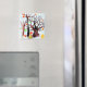 Denna bild är designad som höstdag när snö går ner. Träd förlorar löven och kalkonerna är sitta på sina grönsaker och frukter. Dessa magneter kom i en mängd stilar och storlekar. Underbar att använda dem i köket eller klassrummet.