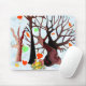 Denna bild är designad som höstdag när snö går ner. Träd håller på att förlora löven och kalkonerna är sitta på sina grönsaker och frukter. Snö täcker hela himlar. Den här musmattan finns även i en gelpad. Gör en underbar gåva.
