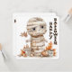 Hösten Wrapped - Mummy i Pumpkin Patch En vidögd mummi inslagen i mjuka beige-bandage har en enda höst löv, omgiven av festive säsong inslag. Vid fötterna sätter du munkliga pumpor, små jack-o'-lyktor, spridda hörn och två silver-fickor med spöke ansikte. En nyfiken svart katt och ett flytande spöke tillför lekfull charm, medan orange lämnar att röra sig runt scenen. Konstruktionen blandar Halloween stollig med mysiga fallviber och fångar säsongens söthet i ett charmerande ögonblick.