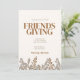 Denna boho-inbjudan till vännernas tackfest är ett måste om du är värd för Thanksgiving för vänner och familj i år! Den redigerbara designen har vacker lövverk med en höstfärgs palett. Tillgänglig som en nedladdningsbar digital mall.