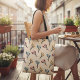 Designen har ett höstfärgat blomster-mönster på båda sidor av taskan.