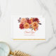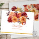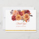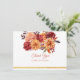 Tackkort för höstens blomsterbröllop. Detta eleganta tackkort för bröllop har vattenfärg-målade blommor i höstens perfekta färger orange, rosafärgad, gul, röd och rosa med guldfolie-ackcenter. Detta är perfekt för klassiska, moderna och vintage bröllopsstilar under höstsäsongen. Bläddra bland urvalet av koordinerade inbjudningskort, RSVP-kort, skyltar och mer.