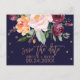 Denna höstens blomsterros guld spara datum vykort är perfekt för en höstbröllop. Designen har en fantastisk bukett av rosafärgade, orange-persika och marsalaburgunderfärgade blommor med falsk roséguld folie typografi och konfetti.