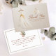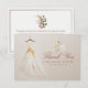 Skicka din tacksamhet med stil med detta eleganta platta tackkort, designat för att komplettera vår dammiga ros och eukalyptus bröllopsfestserie. Framsidan har en akvarellbrudklänning med mjuka gyllene accenter och neutrala blommor, medan baksidan har ett hjärtligt meddelande och torkad botanisk motiv. Perfekt för höstens bröllopsfester, trädgårdsfester eller romantiska firanden.