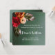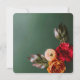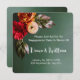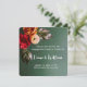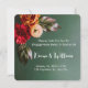 Denna eleganta fyrkantiga bröllopsinbjudan har en vacker arrangemang av höstblommor och blad mot en djupgrön bakgrund. De livfulla färgerna burgunderröd, persika och grön skapar en varm och inbjudande atmosfär, perfekt för ett höstbröllop. Den minimalistiska designen låter blomsterarrangemanget ta huvudrollen, medan den anpassningsbara texten säkerställer en personlig touch.