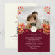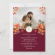 Fira din kärlek med denna eleganta höstbröllopsinbjudan med ett anpassat foto, akvarell höstlöv och en djup burgunderbakgrund. Baksidan innehåller en QR-kod för RSVP och din bröllopswebbplats för gästernas bekvämlighet. Perfekt för bröllop i september, oktober eller november, denna moderna design blandar säsongens charm med en personlig och teknikvänlig touch.
