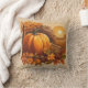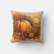 Ett autolandskap med en sol-inställning i förgrunden är en orange-pumpa. Underbart säsong-motiv med höst färger på framsidan av den här kudden, baksidan är bara en färg.