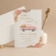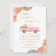 Min Höstens lilla pumpaflicka - Barnkalasinbjudan är det perfekta sättet att inbjuda vänner och familj till en fest! Kortet har en blomster ram och en söt rosa lastbil med pumpa. Du kommer att bli kär i dessa barnkalasinbjudningar.