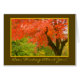 Ett träd med pulserande orange löv står emot andra träd med kalk-grönt och citron-gult löv. (anpassade) texten på framsidan: "Har tänkt på dig". Insidan är tom för ditt eget meddelande.
