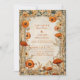 En romantisk höstbröllopsdesign med en vintage botanisk ram av varma orange marigolds och torkade ängsblommor. Den gyllene barockdetaljen och pergamentbakgrunden skapar en elegant, nostalgisk stämning — perfekt för höstbröllop, rustika firanden eller trädgårdsinspirerade evenemang.