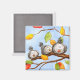 Små fåglar vilar på en träd gren omgiven av fallande höst löv. Medan man tittar på de färgstarka löven som blåser runt trion diskuterar man om de ska flyga söderut eller inte.