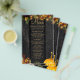 Tvättfällda botaniska blommigtar och rostig orange pumpa över en mörk lingved med en menymall för ljus födelsedagsfest.