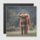 Fotografi av höstgräs i höstkalven fält. Den unga kalven av skotsk höstkalv på en höstgrassi fält med muterad färg. Vackra orangar i mörk jackar kontrastera med lätt gräs i gult och träd i bakgrunden.