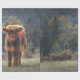 Fotografi av höstgräs i höstkalven fält. Den unga kalven av skotsk höstkalv på en höstgrassi fält med muterad färg. Vackra orangar i mörk jackar kontrastera med lätt gräs i gult och träd i bakgrunden.