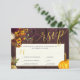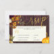 Rustik höst faller blommor och pumpa svarskort för bröllopsinbjudan med måltider på en mörk av burugndy-lada-träbakgrund.