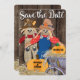 Rustic fall-bröllopet sparar datumkortet. Fågelskrämmorna Bride och Groom Bröllop spara datum med pumpor, hö, rustik lada känns. Säg åt gästerna i bröllop att spara datumet för ert nästa fall i september, november bröllop. Skapat av © Lesruba Bröllop.