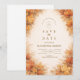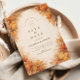 En varm och inbjudande design med livfulla kartblad i rika hösttoner, som vackert inramar en ren och elegant layout. De mjuka akvarellstrukturerna och jordnära färgerna fångar höstens väsen och skapar en mysig men ändå förfinad atmosfär. Perfekt för höstbröllop, rustika firanden och naturinspirerade evenemang, denna design förenar säsongens charm och tidlös enkelhet i en vacker balanserad komposition.