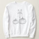 Behålla mysigt detta fall med en Halloween-tröja med en enkel svart linjekonst som illustrerar en katt sitta bakom två pumpor, en stor och en liten. Den rena vita bakgrunden gör att den feta svarta teckningen blir tydlig och skapar ett modernt säsong-utseende som är lätt att bära. Perfekt till kvinnor som kärlek katter, subtle Halloween mode och bekväm höst stil. Oavsett om du är ute på ett pumpplåster, slappnar av på en coola kväll eller bara vill ha en festlig men minimal tröja, så ger den här designen en en lekfull och underskattad vibe till din gardin.