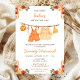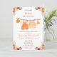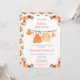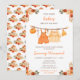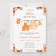 Denna söta och fantasifulla akvarell baby shower inbjudan har en klädstreck med orange blomsterarrangemang. Texten kombinerar handskriven skrift och sans serif-teckensnitt för en stilren och modern look. Detta är perfekt för en höst baby shower.