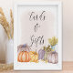 Fall Cards & Gifts skylt - perfekt för höst baby shower, bröllops shower, födelsedag, bröllop etc. Bokstäver med "Kort & presenter" i söt kalligrafi och dekorerad med akvarellpumpor, rustik korg och vas med vete på rosa akvarellbakgrund. Vänligen bläddra i min butik - country pumpkin kollektion - för matchande inbjudningar och festdekorationer.