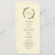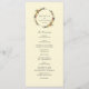 Vår eleganta bröllopsprogram innehåller detaljer om er ceremoni i elegant grå typsnitt, inframad längst upp av en akvarellkrans i grått, guld, gult, orange och svart på ecru bakgrund.