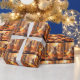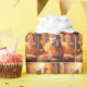 Ett chipmunk har en orange tutu på en träd-stump i en höstskog och bildar en hjärtform med tassar