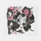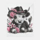 En söt svart och vit högland som dekoreras med en svart hatt av snyggt, med rosa blommor, med charm och konstnärlig design.