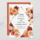 Mot en rostorange bakgrund visar sig denna bröllopsinbjudan med texten Save the Date med akvarellblomsterbuketter i höstens perfekta färger orange, rosafärgad, gul, röd och rosa med guldfolieaccent. Detta är perfekt för klassiska, moderna och vintage bröllopsstilar under höstsäsongen. Bläddra bland urvalet av koordinerade inbjudningar, RSVP-kort, skyltar och mer.