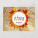 Upptäck den sanna känslan av tacksamhet och enighet med vår anpassade Thanksgiving-postkort. Fördjupa dig i charm med en samtida typsnittsblandning, där ett elegant handskrivet typsnitt vackert harmonierar med ett polerat modernt sans serif-tecken. Inneslutet i en fläckfri vit cirkel, prydd med en subtil karmosinröd kant, hittar du lönnlöv i en hypnotiserande mängd höstnyanser – en effortless övergång från strålande guld till flammande röda och djupa bruna färger. Texten fungerar som en tom duk, redo för din individuella blomstring för att skapa ett genuint unikt budskap.