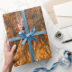 Ett vackert fall som illustrerar att träd viftar över en gyllene solupplyst bana i en skog/skogen. Perfekt för fall, hösten. I färg av orange, gult, guld och brunt.