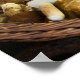 Poster ett tryck på en livssammansättning av ingredienser i livsmedel från hösten, såsom porcin svamp, zucchini och pumpa.