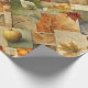 Stilfullt, nostalgiskt, vintageinspirerat presentpappersmönster med hösttema i en papperscollagestil.