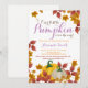 Höstpumpa lila flicka baby shower inbjudan. Höst baby shower inbjudan. Akvarell pumpa blommor och blad. Lila och orange. För ytterligare anpassning, klicka på "Anpassa"-knappen och använd vårt designverktyg för att ändra denna mall.