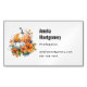 Magnetiskt affärskort med falltematavbildning. Orange och vita pumpor omgivna av höst löv blommor och orangar.