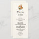 Menykort med falltemabild. Orange och vita pumpor omgivna av höst löv blommor och orangar.