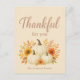 Skicka varma välgångsönskningar med detta tacksägelsekort med akvarell vita pumpor, gyllene solrosor och höstlöv på en mjuk neutral bakgrund. Perfekt för att dela tacksamhet, skicka tacksägelsehälsningar eller inbjuda nära och kära till en högtidsfirande, detta charmiga höstkort fångar årstidens skönhet.