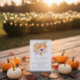 Fira din kärlekshistoria med höstens varma färger! Detta charmiga "Spara datum"-kort har pumpa, gyllene blad och rustika höst detaljer - perfekt för par som planerar en mysig höstbröllop eller festlig firande. Anpassa med era namn, datum och speciella meddelande för att ge era gäster en hjärtlig första glimt av er stora dag. Ett vackert sätt att sätta tonen för ett höstbröllop som är fyllt med kärlek, värme och säsongens charm.