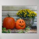 En pumpa, jack-o-lantern och gult morsa är perfekt under en visning på hösten.