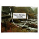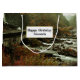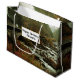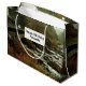 Giftväska med naturfotografi. Moody och vackert landskap. En avskärmad stenbro bredvid en livlig flod med skog och berg som omger området.