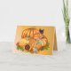 En grupp pumpor som vilar på löv. Solrosaccent och söt svart katt som tittar ut mot dig. Stor bild för Höst, Thanksgiving eller Halloween Hälsningar eller Inbjudningar.