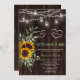 Unikt design med "JAG GÖR, JAG OCKSÅ" typografi inuti två hjärtan, murarljus, akvarellsolrosor, grön krans, på en gammal ladugård. Använd Anpassa verktyg för att lägga till din information. Besök, tack, min Rustik Country ALL FEST BBQ Kollektion.