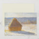 Höststack på morgonen, snöeffekt (1891) av Claude Monet är en gammal impressionistisk konstmålning. En vinterscen med en höstack på en gårds vete fält som kastar en skugga på snön.