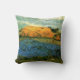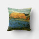 Höststackar under en regnig himmel av Vincent van Gogh är en vintage post-impressionistisk landskapsnaturmålning. En bondgård med vetefält, höstackar och kråkor flygande i den stormiga himlen på en regnig dag under höstskörden.