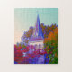 Ett klassiskt kyrkstyre stiger upp över briljant höstmunk träd på detta vintage-Amerikanska smaksatta pussel.