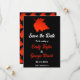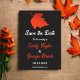 Den här eleganten faller bröllopet, förutom datumet då inbjudan är perfekt för ett modernt höstbröllop. Den enkla designen har rött höst löv med elegant vit och röd typografi på svart bakgrund.