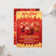En vacker inbjudan med tre utsökta kandade äpplen på en röd bakgrund med höstliga blad. Väldigt fint för en höst- eller halloweenfest.