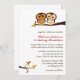Whimsical och söta bröllopsinbjudningar med en bedårande illustration av två romantiska ugglor som sitter på en trädgren.