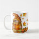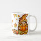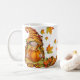 Orangen "Happy thanksgiving" med en flickgnom med pumpor, äpplen och höst löv. Det är perfekt för Thanksgivingen firande.