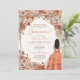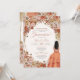 Quinceanera-inbjudan med torkad blommigt, ro, pampasgräs och handflatan och höst löv. Den här designen har en tjej i en quince-gryning omgiven av vackra höstblommor och monarch-fjärilar (som kan gömmas i designen verktyg om du inte vill ha dem). Se butiken för denna design i många variationer, inklusive hudton/hårfärg färg, och utan flickan också.