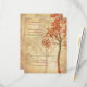 Höstträd bröllop RSVP svarskort. Designen representerar ett träd i höstfärger av bränt orange och grönt placerat på en krämfärgad åldrad pergamentbakgrund. Detta kan också användas som ett mottagnings-, riktnings- eller boendekort med ändringar av texten.